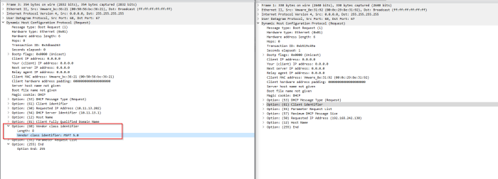 0.0.0.0.68 > 255.255.255.255.67: BOOTP/DHCP, Request from 00:0c:29:8e:31:92, length 288, xid 0x5333e4b1, secs 1, Flags [none]